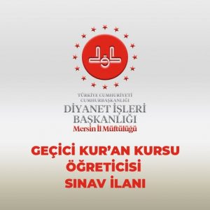 Geçici Kur’an Kursu Öğreticiliği sınav duyurusu Mersin İl Müftülüğü resmi web adresinde http://mersin.diyanet.gov.tr duyurular bölümünde ilan edilmiştir.